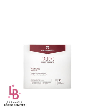 Desde Farmacia López Benítez recomendamos Iraltone Hair Efflu-Booster como el tratamiento de rescate definitivo durante el otoño y la primavera. No obstante, recuerda que para un protocolo de máxima eficacia, debes combinar este suplemento con Iraltone Champú Fortificante. Esto mantendrá el cuero cabelludo receptivo y la fibra protegida externamente. Además, su cómodo formato en viales individuales facilita el cumplimiento del tratamiento incluso fuera de casa. Para concluir comentarte que en Farmacia López Benítez estamos a tu entera disposición para asesorarte en tu ritual capilar avanzado.
