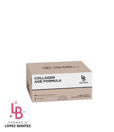 LB- Age Formula es el tratamiento de nutricosmética de vanguardia diseñado para rejuvenecer la piel desde el interior . En primer lugar, este producto destaca por su exclusiva tecnología con Péptidos de Colágeno Hidrolizado (Verisol®), que ayudan a revitalizar la dermis profundamente en cada toma diaria al estimular la producción natural de colágeno y elastina. Asimismo, su fórmula de alta pureza médica actúa sobre la estructura de soporte cutáneo, regenerando la firmeza facial y reduciendo la profundidad de las arrugas de manera eficaz. Es una innovación asombrosa de Farmacia López Benítez para tu belleza integral con seguridad superior y resultados visibles en pocas semanas.
