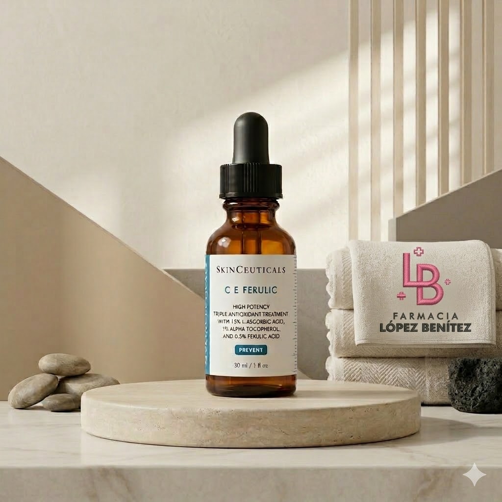 Desde Farmacia López Benítez recomendamos esperar unos minutos tras la aplicación para que el sérum se absorba completamente antes de aplicar la hidratante o el protector solar, ya que una vez absorbido, su efecto permanece activo durante un mínimo de 72 horas. No obstante, recuerda que es normal que el producto presente un ligero color ámbar debido a la alta concentración de activos puros, sin que esto afecte a su eficacia antioxidante. Además, su uso continuado no solo previene daños futuros, sino que corrige visiblemente la profundidad de las arrugas ya existentes. Para concluir comentarte que en Farmacia López Benítez estamos a tu entera disposición para asesorarte en tu ritual de protección avanzada.