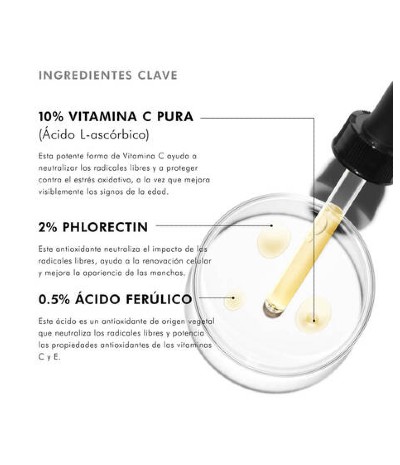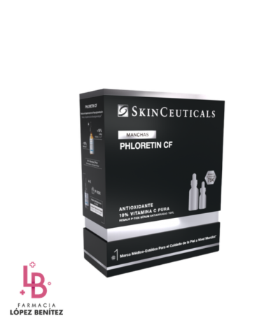 SkinCeuticals Phloretin CF Antioxidante con Vitamina C presenta una combinación sinérgica patentada de 2% de phloretina (o floretina), 10% de vitamina C pura (ácido L-ascórbico) y 0.5% de ácido ferúlico para una mayor protección contra el envejecimiento cutáneo atmosférico – daño ambiental y signos prematuros de envejecimiento causados por radicales libres de UVA/UVB, radiación infrarroja (IR-A) y contaminación por ozono (O3). Además de los beneficios protectores antioxidantes, Phloretin CF mejora la apariencia de las manchas oscuras, las líneas de expresión y el tono de piel desigual.