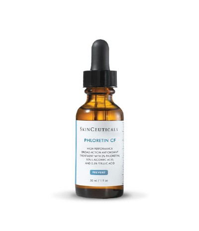 SkinCeuticals Phloretin CF es un sérum de vitamina C, ácido férulico y phloretina patentado que ofrece una protección ambiental avanzada y disminuye la apariencia de líneas de expresión y manchas oscuras